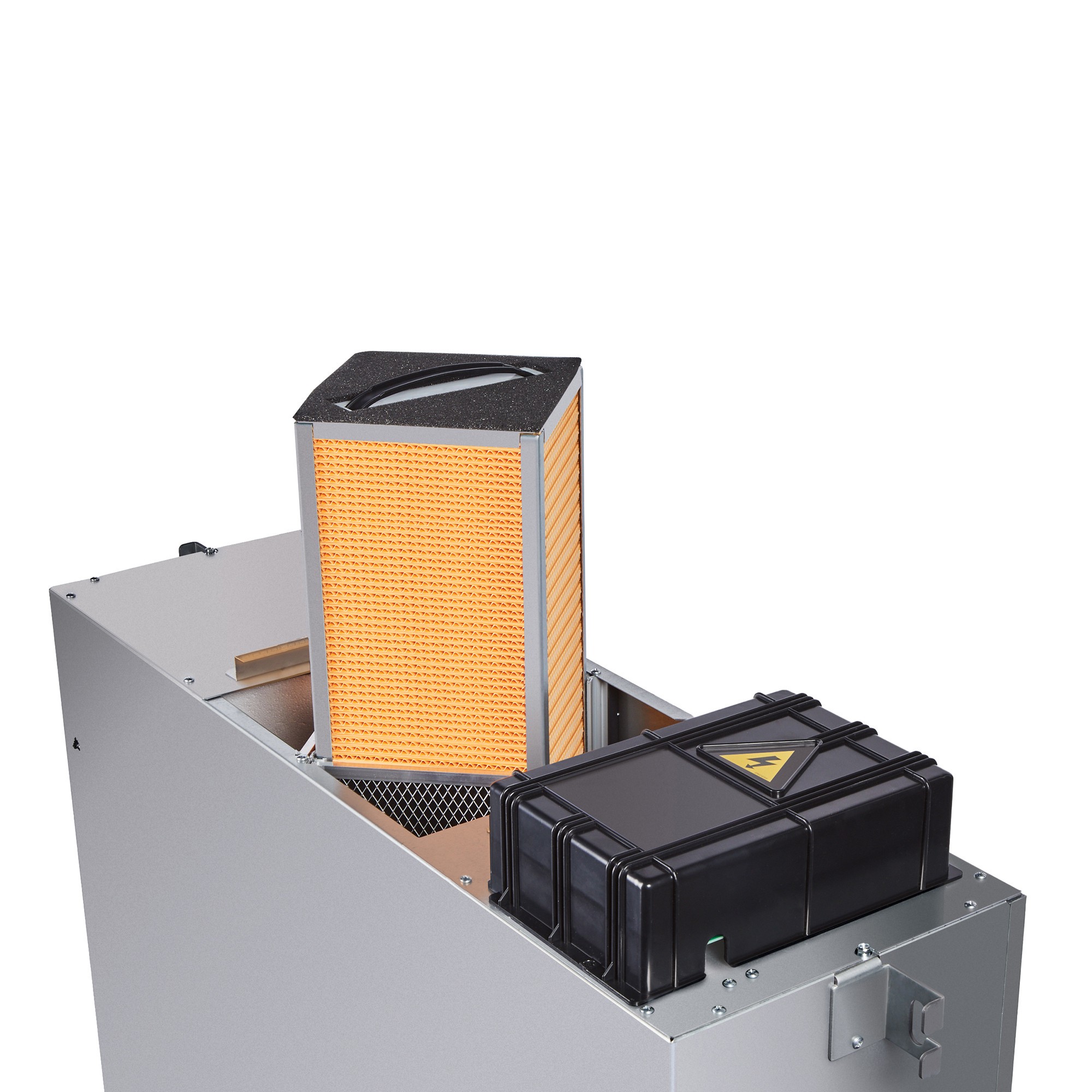 Стандартно установки комплектуются приточным и вытяжным вентиляторами, приточным и вытяжным фильтрами, пластинчатым рекуператором и системой автоматического управления с пультом дистанционного управления. Инновационный тип рекуператора позволяет подогревать и увлажнять приточный воздух, при этом специальная мембрана рекуператора переносит из вытяжного воздуха только молекулы воды, оставляя в нем все загрязнения.